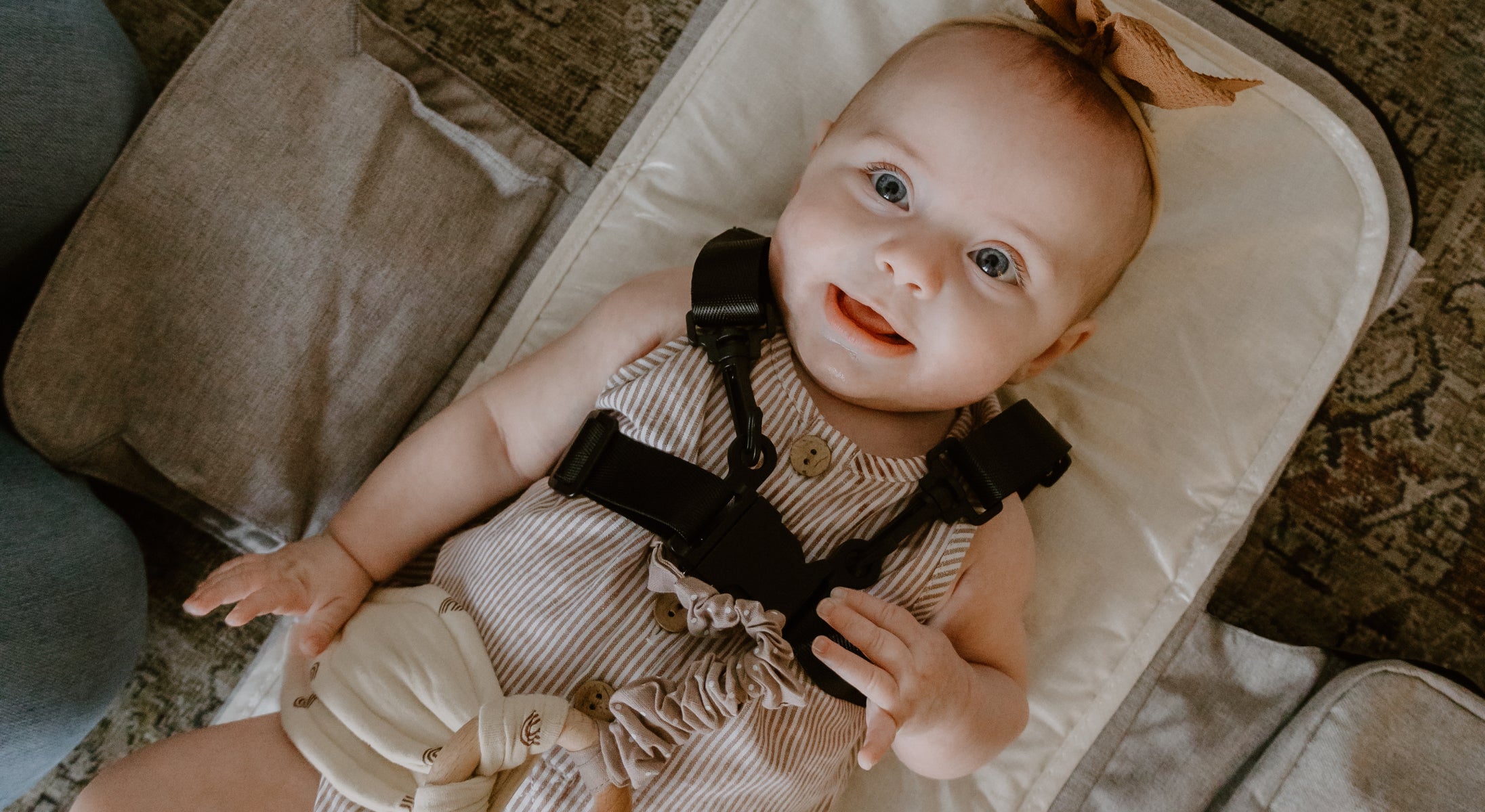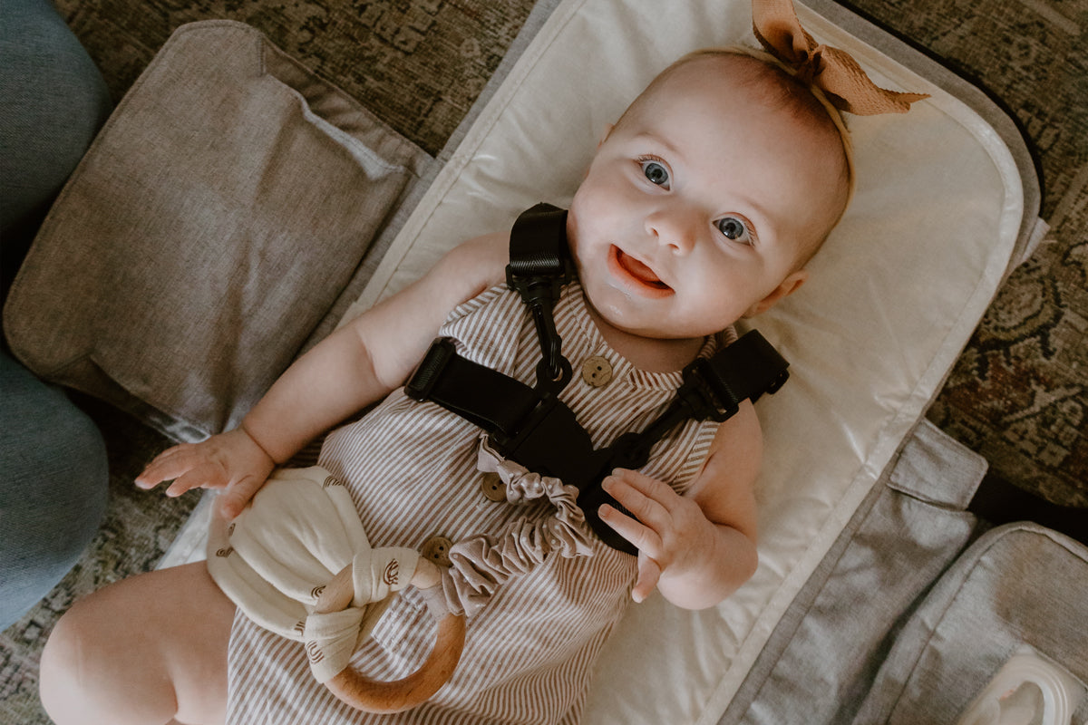 A 4-point safety harness prevents even the squirmiest baby from falling or rolling over while being changed. Brilliant!
