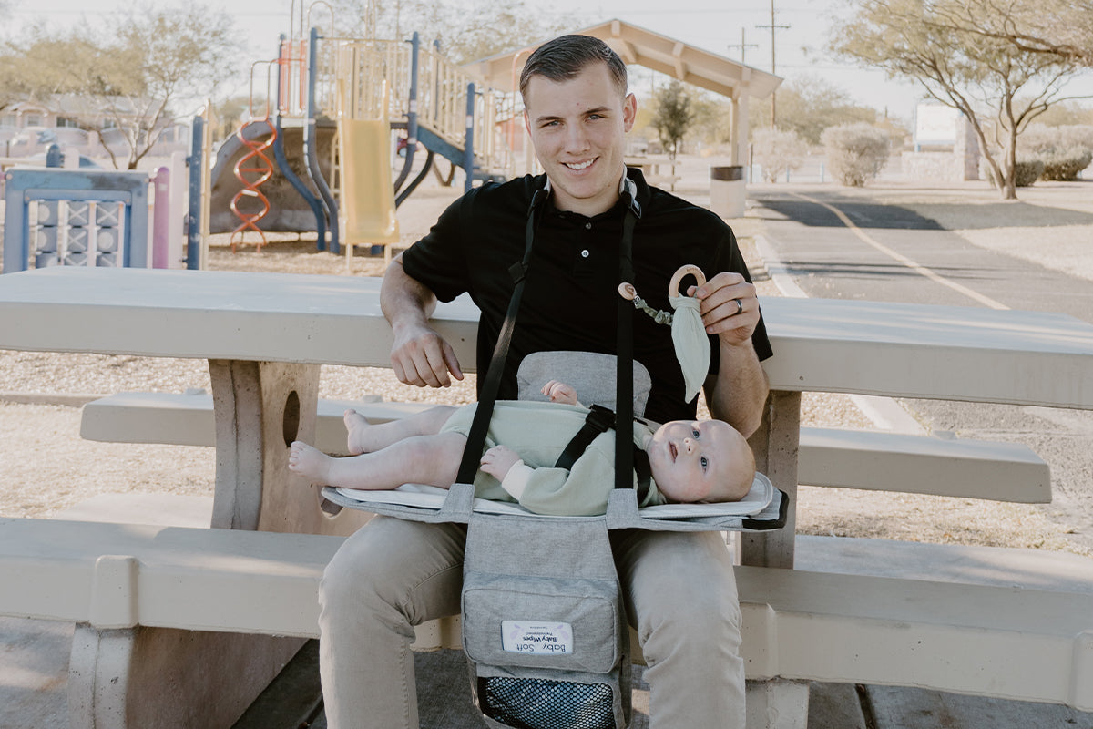 Baby safety is our #1 priority. Chikiroo® Wearable Changing Station has passed independent safety testing and it is safe for babies up to 30 lbs when worn. Learn more about our safety testing.