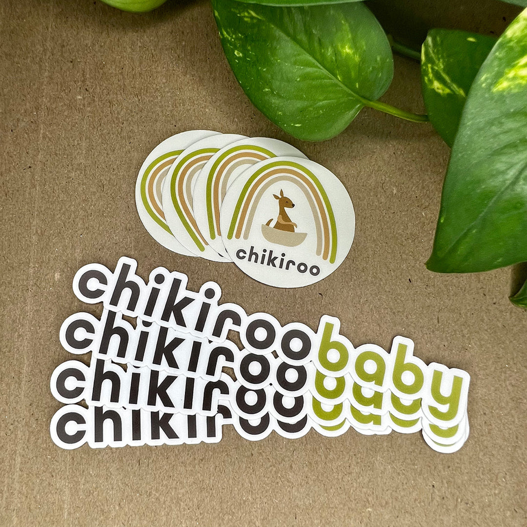 - Chikiroo Baby logo sticker: 5.66" x 1"