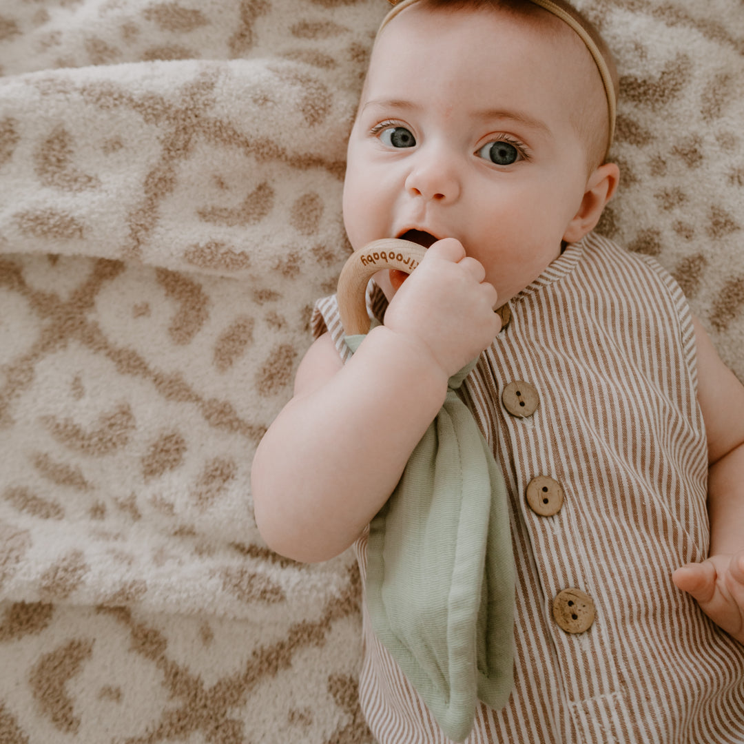 ✅ Textured fabric and wooden ring help soothe teething gums and promote healthy teeth development.